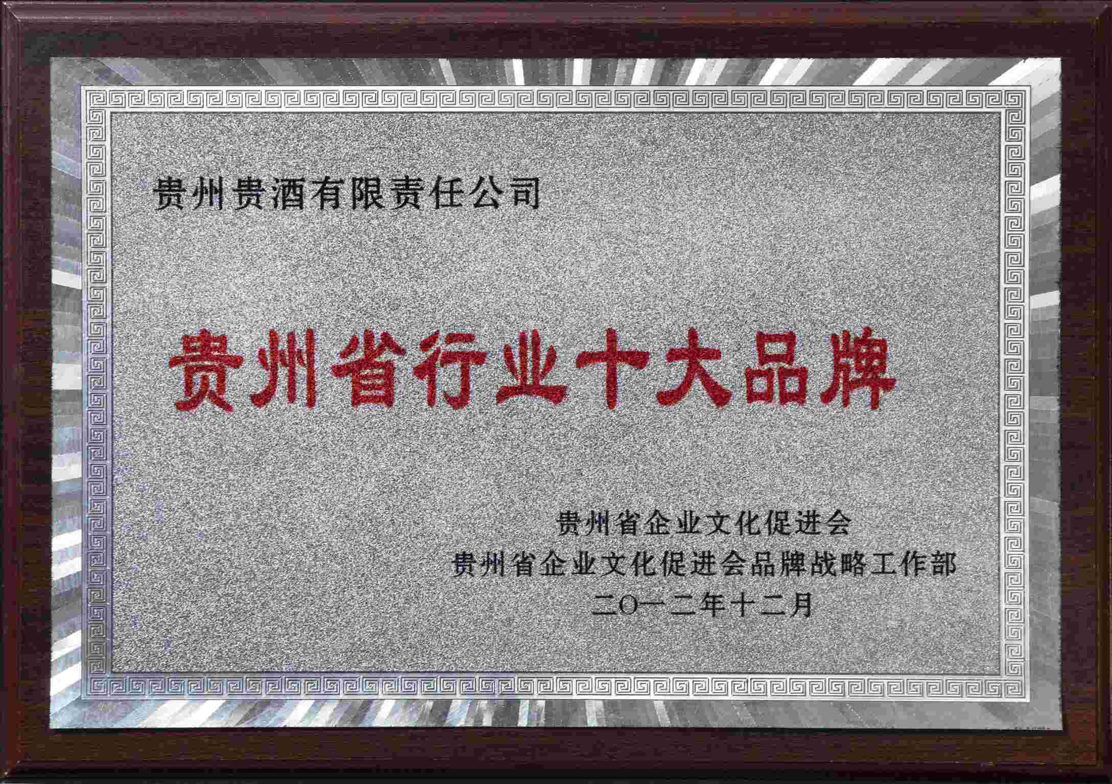 2012年贵州省行业十大品牌