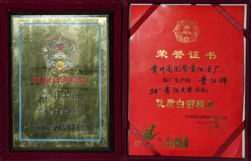 贵阳牌54°贵阳大曲——1993年中国优质白酒精品推荐委员会“优质白酒精品”