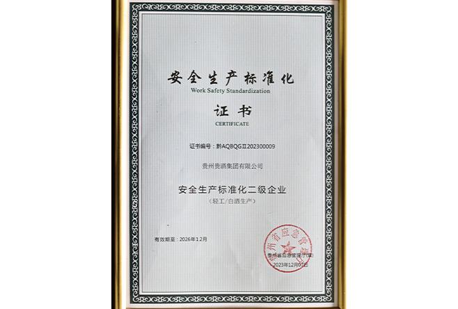 安全生产标准化二级企业(轻工/白酒生产)